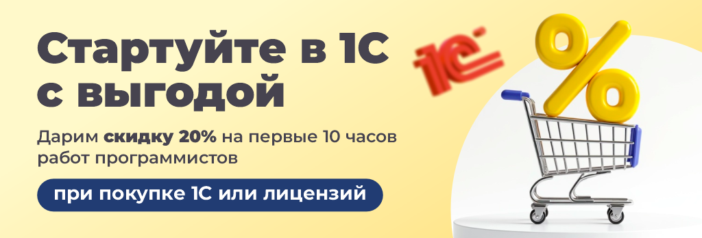 Акция действует для клиентов малого и среднего бизнеса, чтобы поддержать ваше развитие и сделать внедрение 1С максимально выгодным и комфортным.