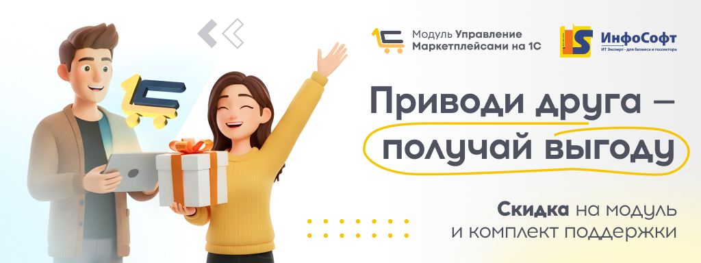 Порекомендуй другу модуль «Управление Маркетплейсами на 1С» - получай подарки!