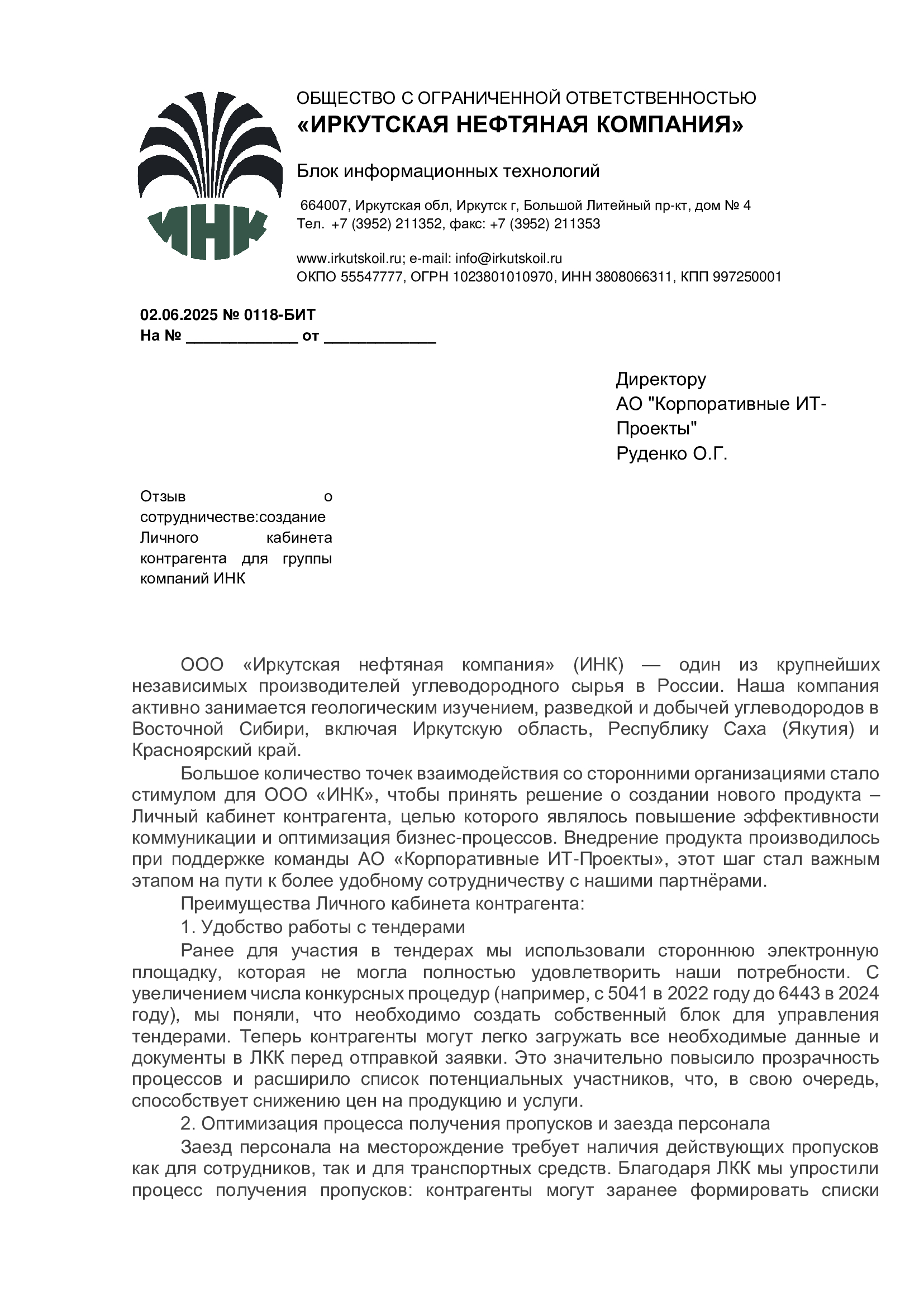 Внедрение Личного кабинета контрагента в ООО «Иркутская нефтяная компания»